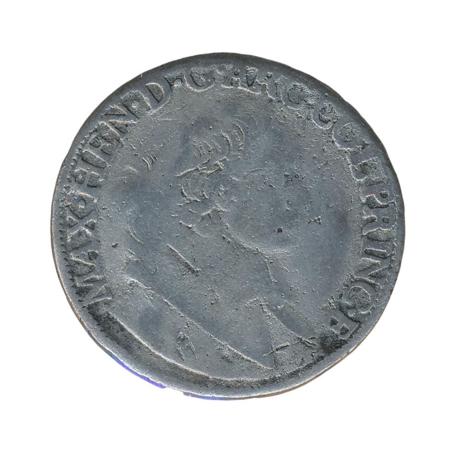 Zilveren munt met afbeelding van Maximiliaan Hendrik van Beieren (1650-1688).