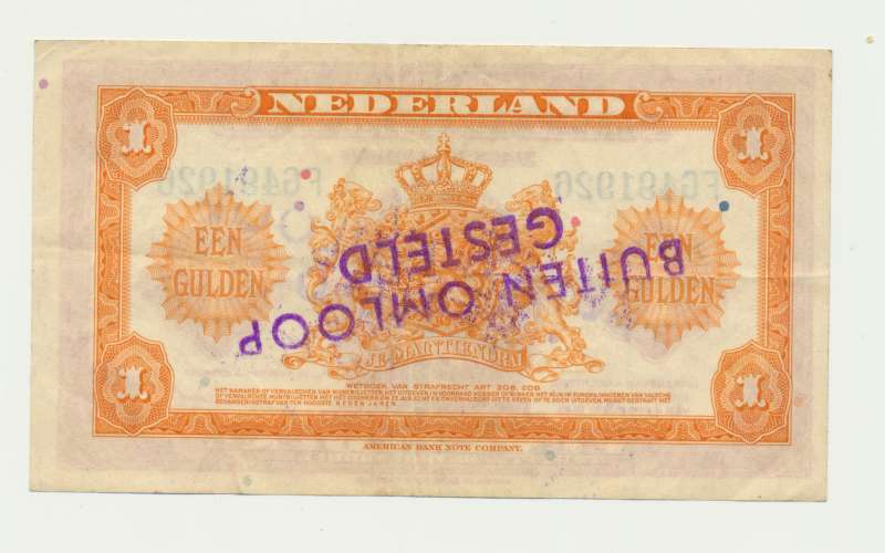 Omdat de muntbiljetten uit 1943 al voor de bevrijding van Noord-Nederland waren uitgegeven, kwam een deel ook in het zwartgeldcircuit van het bezette gebied terecht en daarom werd de serie tijdens de geldzuivering van 1945 uit omloop gehaald.