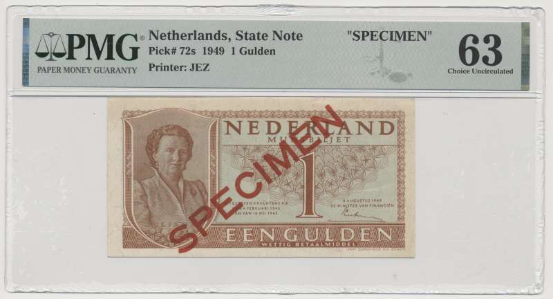 Nederland 1 Gulden 1949 Juliana Specimen PMG63