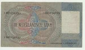 Het tientje werd uit omloop gehaald tijdens de geldzuivering van 1945.