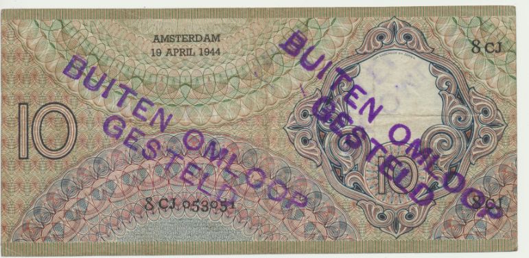 Het tientje werd bij de geldzuivering van 1945 weer uit de omloop gehaald door de Nederlandsche Bank.