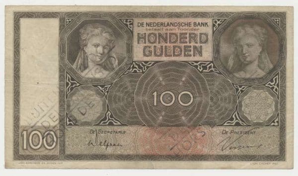 Het 100 guldenbiljet werd bij de geldzuivering in 1945 uiteindelijk ongeldig gemaakt en uit de omloop gehaald.