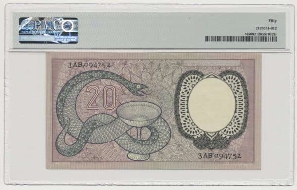 Het twintig guldenbiljet van Boerhave is het laatste biljet van twintig gulden dat de Nederlandse Bank heeft uitgegeven. Op de voorzijde is de arts Herman Boerhave te zien en op de achterkant is een slang met apothekersbeker te zien. Het biljet van twintig gulden heeft de handtekeningen van DNB-President Holtrop en DNB-Secretaris de Jong. Het biljet is uitgegeven in 1955 maar werd vaak verward met het tientje van Hugo de Groot, het werd dan ook in 1956 weer uit de roulatie gehaald en is daarom erg moeilijk te vinden. Het biljet is onderdeel van de eerste erflater serie van Eppo Doeve, die in de jaren 50 in omloop kwam. Naast het twintig gulden biljet van Boerhave zijn er ook nog de volgende biljetten bij de serie: