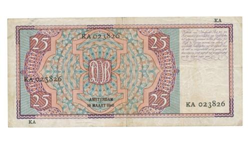 Het vijfentwintig guldenbiljet werd uiteindelijk bij de geldzuivering van 1945 uit omloop genomen.