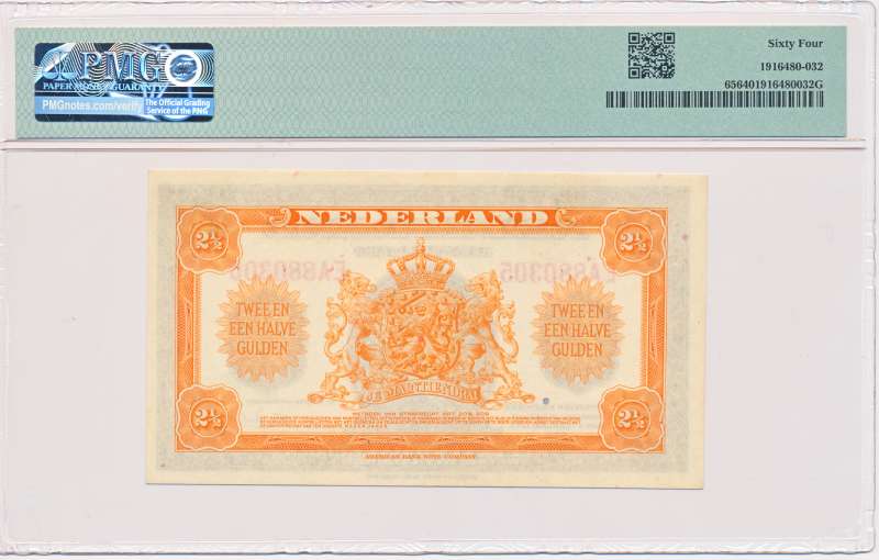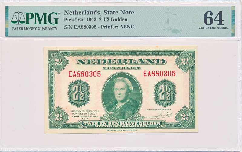 Nederland 2,5 Gulden 1943 Wilhelmina PMG64