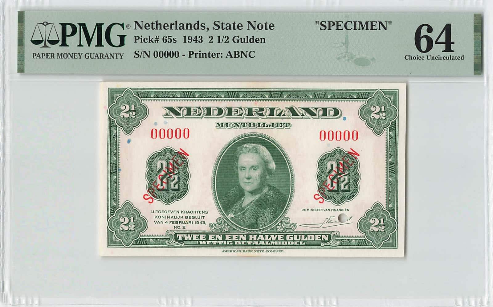 Nederland 2,5 Gulden 1943 Wilhelmina Specimen PMG64