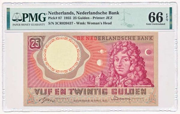 Nederland 25 Gulden 1955 Huygens PMG66 EPQ