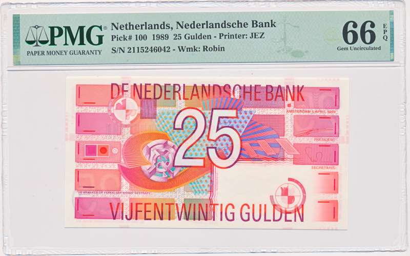 Nederland 25 Gulden 1989 Roodborstje PMG66 EPQ