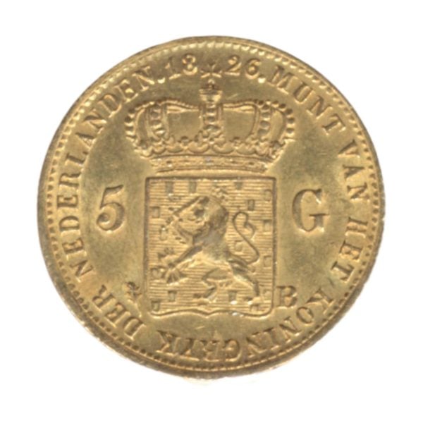 Het gouden vijfje van Willem 1 is de eerste munt van vijf gulden in de Nederlandse geschiedenis. Het vijfje is gemaakt van 900/1000 goud, weegt 3,36 gram en heeft een diameter van 18,5 millimeter. Op de kopzijde is de afbeelding van koning Willem 1 te zien, met de tekst ‘Willem 1 koning der Nederlanden G.H.V.L. (afkorting voor Groothertog van Luxemburg). Naast het gouden vijfje circuleerden er in Nederland destijds de volgende munten: