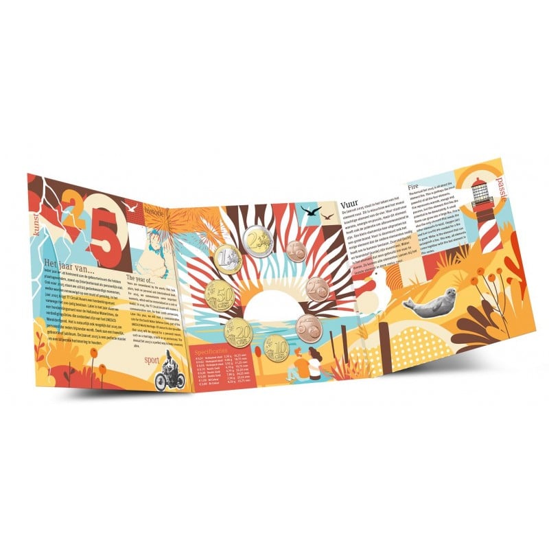 Nederland BU Jaarset 2025 – Vuur Deze set bevat de 1 cent t/m de 2 euro in BU-kwaliteit van Willem Alexander. Thema: ‘Vuur’