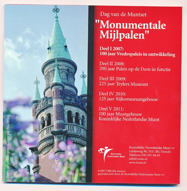 Nederland Dag van de muntset ‘Monumentale Mijlpalen’ 2007 100 jaar Vredespaleis in ontwikkeling