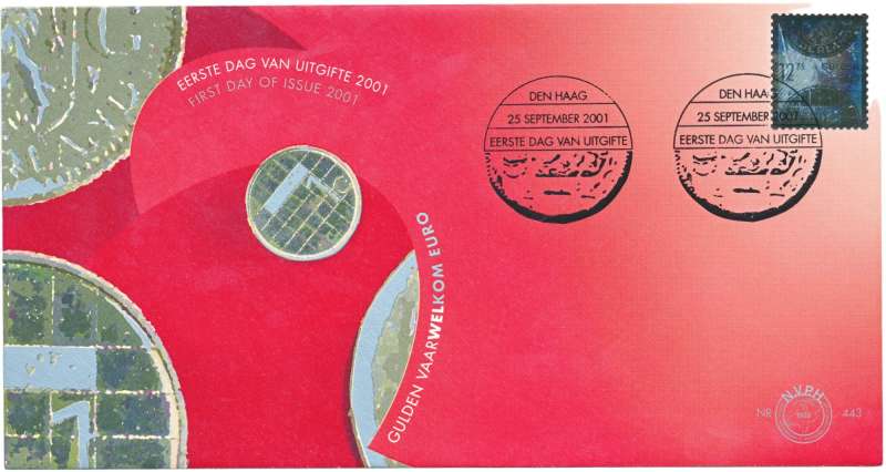 Nederland eerste dag uitgifte 2001 met zilveren postzegelMet verassingszegel 12,75 gulden (zilver) FDC envelop. Nummer:443.