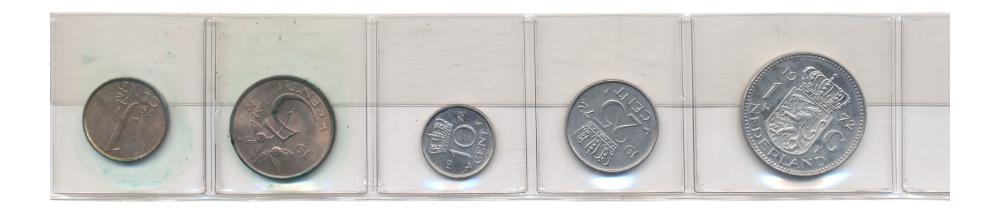 De set bevat vijf munten: