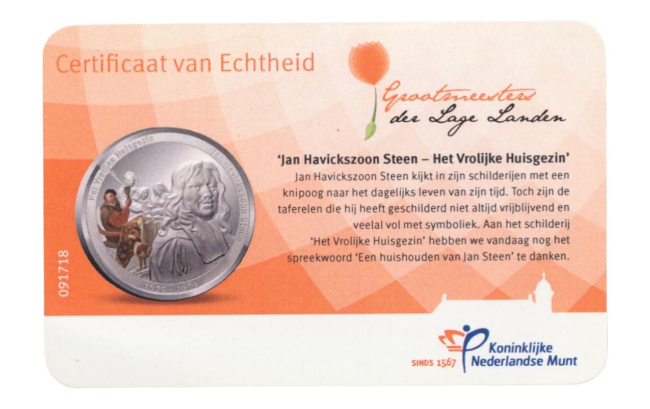 Nederland Jan Havickszoon Steen-penning in kleur in coincard