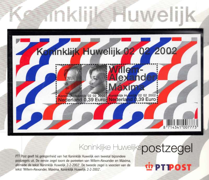 Ter gelegenheid van het koninklijk huwelijk op 02-02-2002 van Willem Alexander en Maxima.