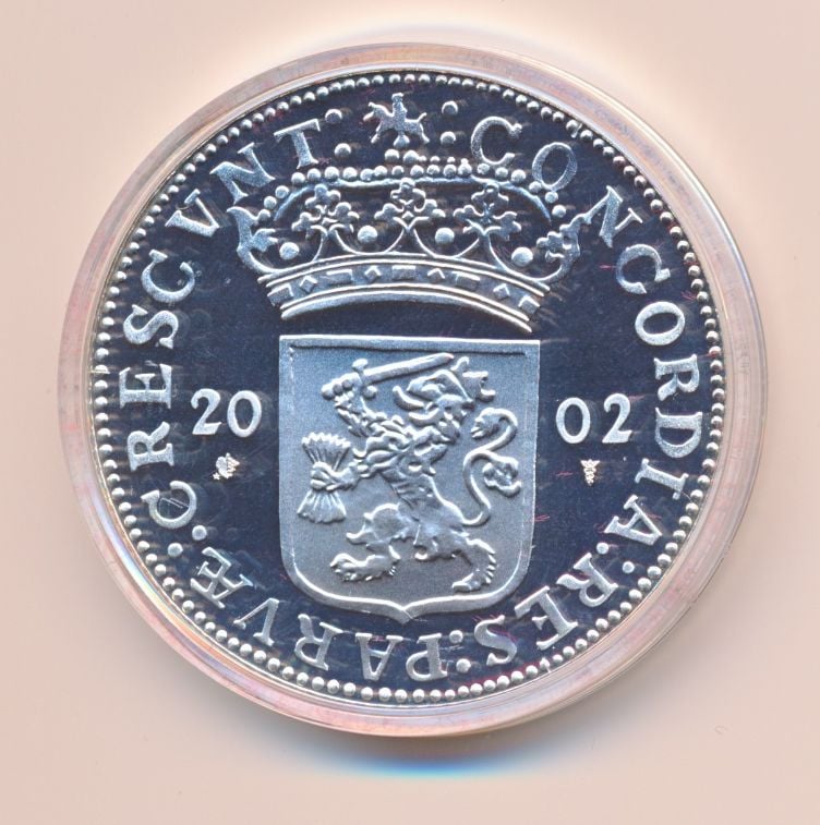 Nederland zilveren Dukaat 2002 Gewicht: 28,25 gram Gehalte:873/1000 Diameter: 40 mm Zie scans voor meer details. Voor vragen, stuur ons gerust een bericht.