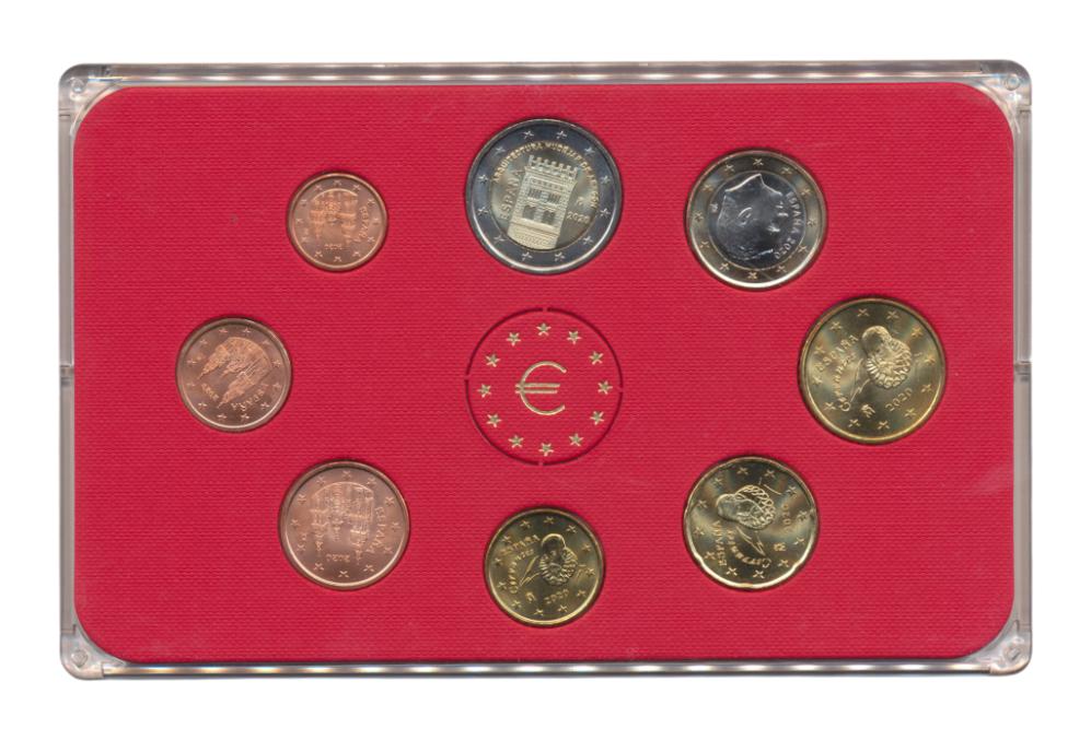Spanje Euromuntset 2020 UNC in hard plastic behuizing