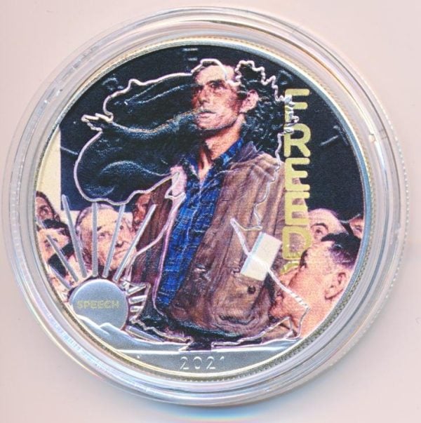 Gekleurde uitgifte van de zilveren Amerikaanse dollar, ook wel de eagle genoemd.