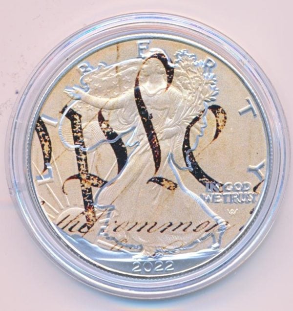 Gekleurde uitgifte van de zilveren Amerikaanse dollar, ook wel de eagle genoemd.