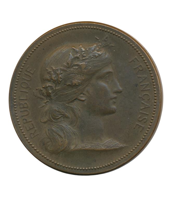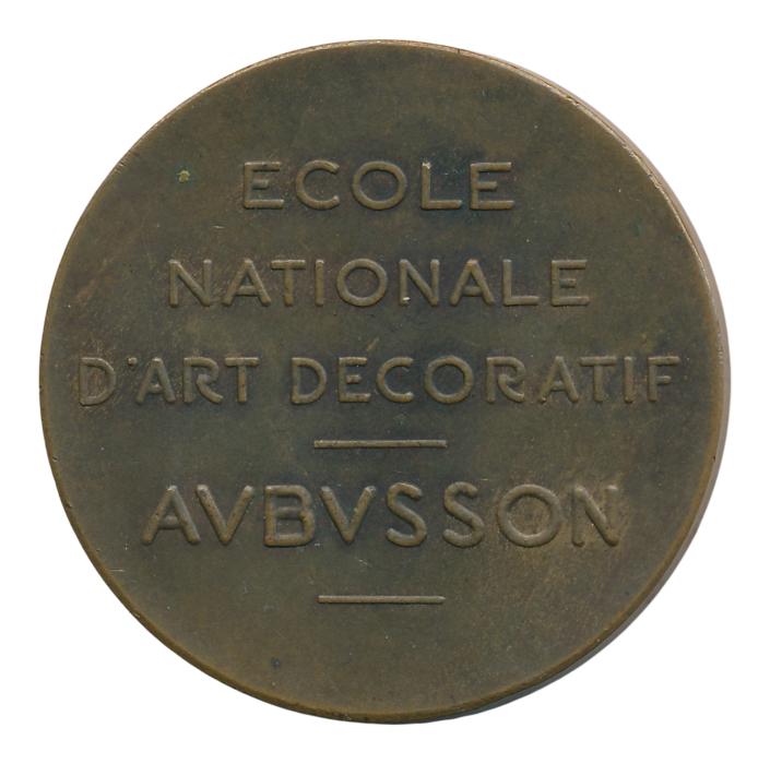 ‘Voorzijde: personifactie van de Franse Republiek: hoofd Marianne. Keerzijde: ‘Ecole Nationale d’Art Decoratif Aubysson’.