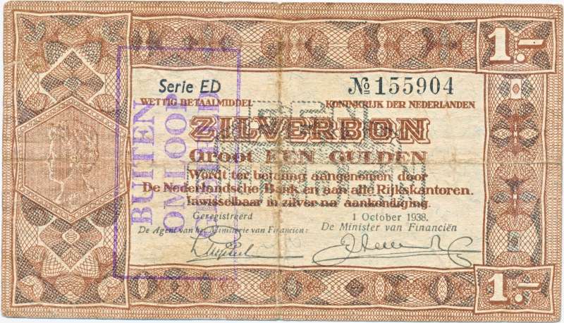 De zilverbon 1938 werd uiteindelijk in september 1945 uit de roulatie genomen, en werd vervangend door een muntbiljet uit 1945 met koningin Wilhelmina erop.