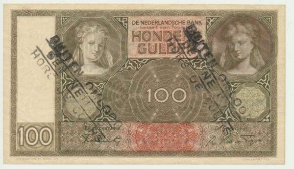 Банкнота в 100 гульденов была признана недействительной и изъята из обращения во время чистки наличности в 1945 году.