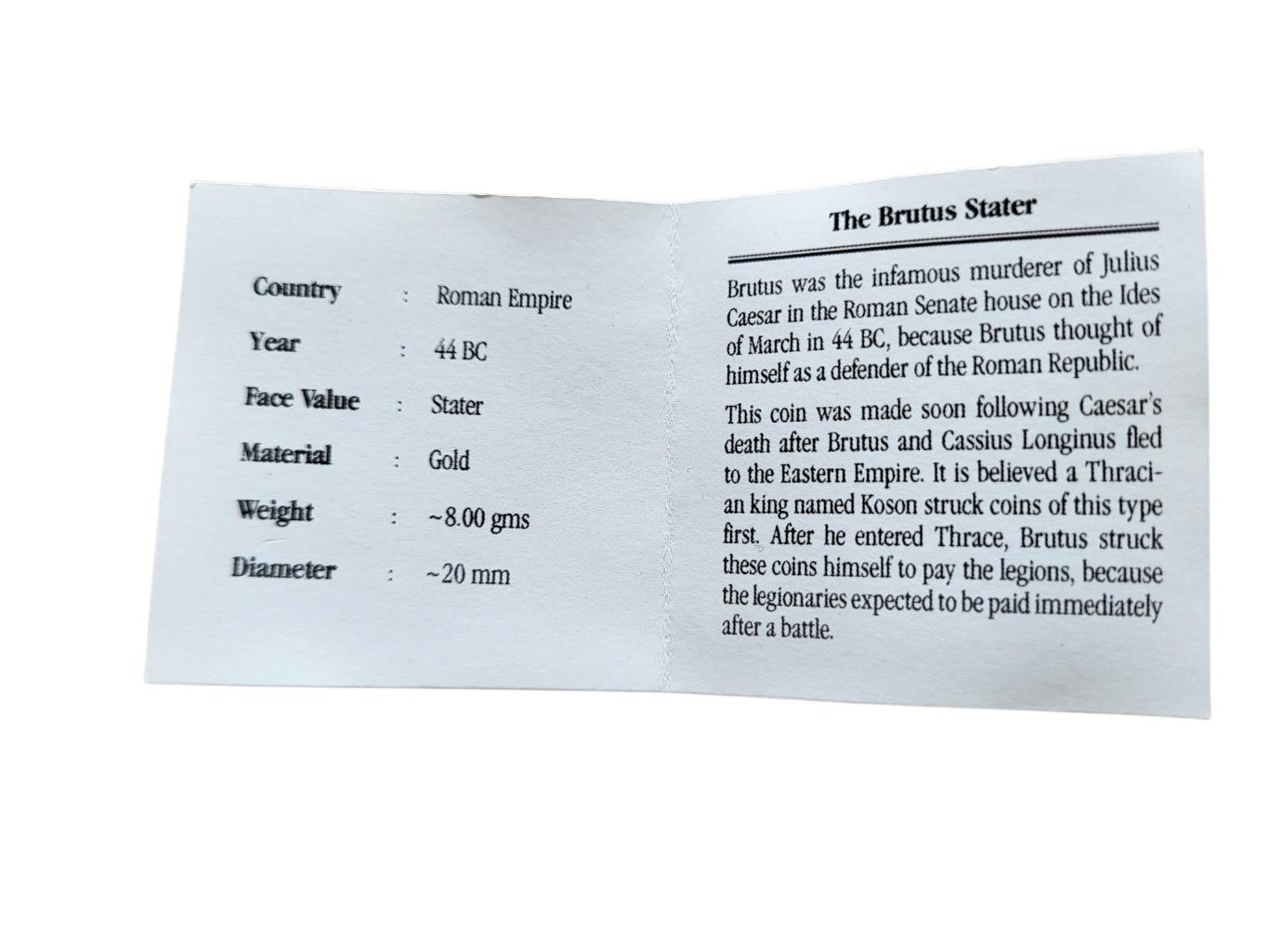 Oud Grieks Gouden Stater Thracië 44 v. Chr Brutus in luxe doosje