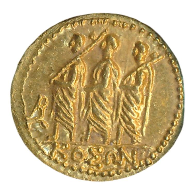 Deze munt werd geslagen kort na Caesars dood, nadat Brutus en Cassius Longinus naar het Oost-Romeinse Rijk waren gevlucht. Men gelooft dat een Thracische koning genaamd Koson als eerste munten van dit type sloeg. Nadat hij Thracië was binnengevallen, sloeg Brutus deze munten zelf om de legioenen te betalen, omdat de legionairs verwachtten direct na een veldslag betaald te worden.