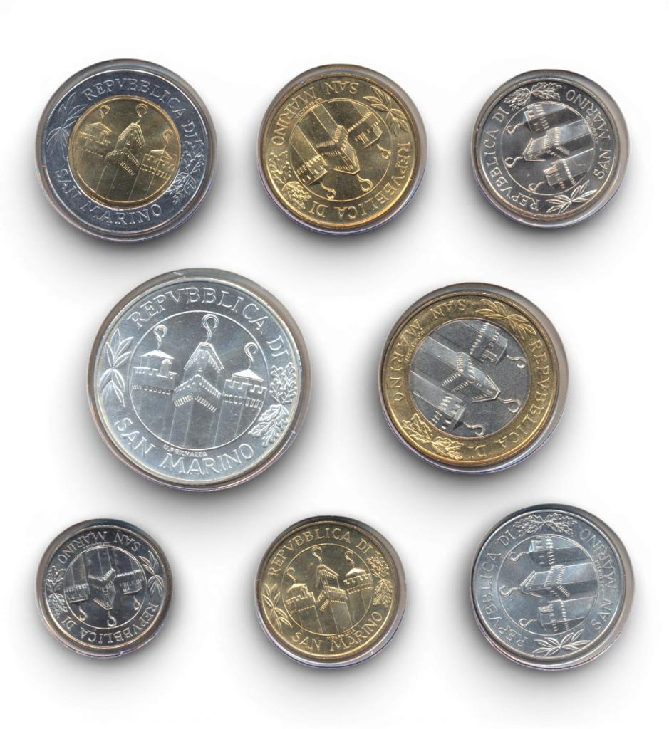 De set bevat de volgende acht munten: