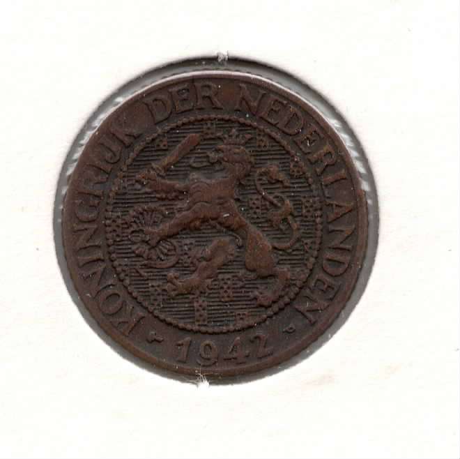 Nederland 1 Cent 1942 Roodkoper Geslagen in roodkoper tijdens de 2e wereldoorlog, in Amerika.
