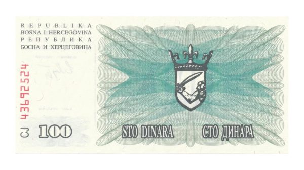 Bosnië en Herzegovina 100 dinars 1992 Pick:13 Zie scans voor meer details. Voorbeeld-foto. U ontvangt een zelfde soort exemplaar. 如有问题,请随时给我们留言。