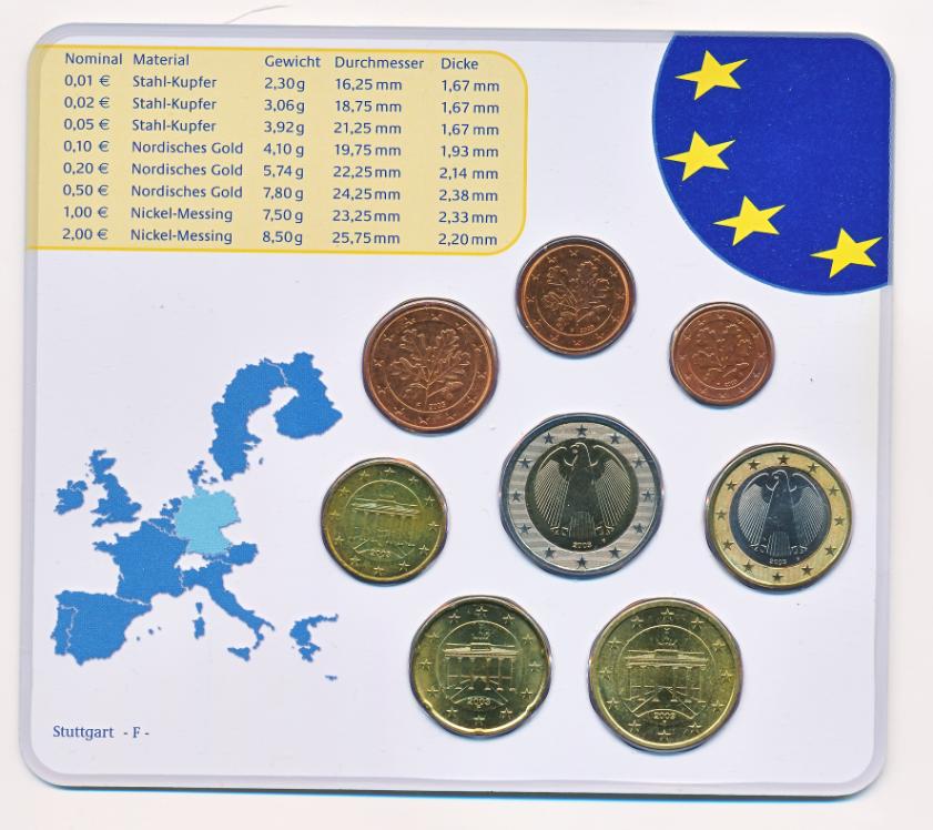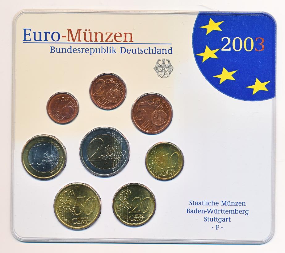 Duitsland BU-set 2003-F Baden-Württemburg Stuttgart 该套装包含以下 BU 质量的硬币: