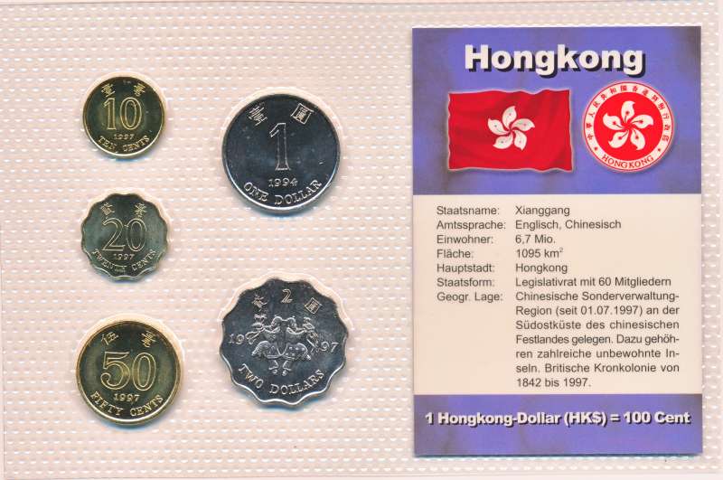 Hong Kong muntset in plastic verpakkingInclusief verdere details over het land.