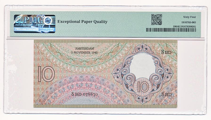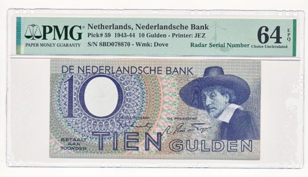 Nederland 10 Gulden 1943 Staalmeester PMG64 EPQ (Radar serial number)
