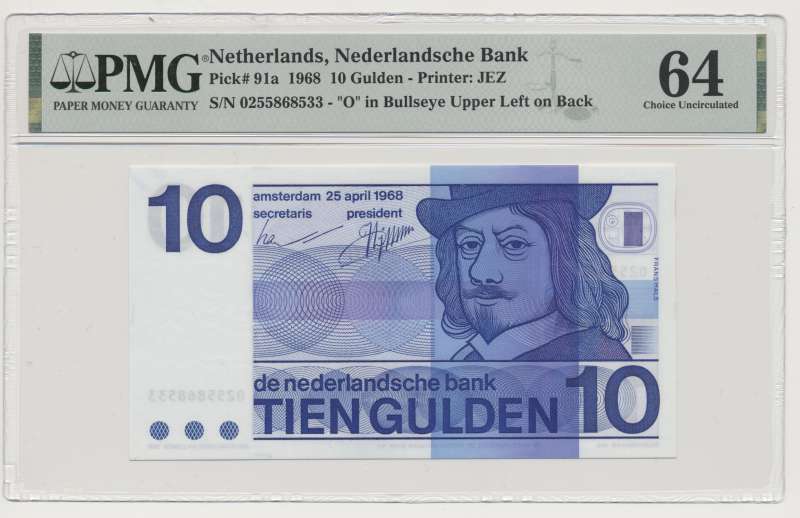 荷兰 10 盾 1968 弗兰斯-哈尔斯(Frans Hals),双椭圆形 PMG64