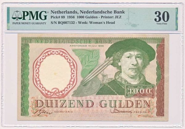 荷兰 1000 盾 1956 年伦勃朗 PMG30