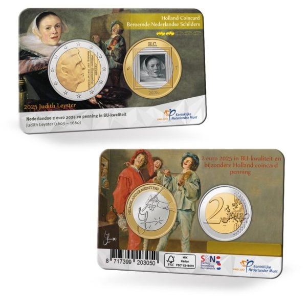 Een van de weinige vrouwelijke meesterschilders, Judith Leyster (1609-1660) uit de Nederlandse Gouden Eeuw. Haar levendige en expressieve schilderijen, vaak met vrolijke taferelen en muzikanten, behoren tot één van de hoogtepunten van de Nederlandse kunstgeschiedenis. Deze uitgifte eert haar nalatenschap met een prachtig vormgegeven penning, geïnspireerd op haar meesterwerken.
