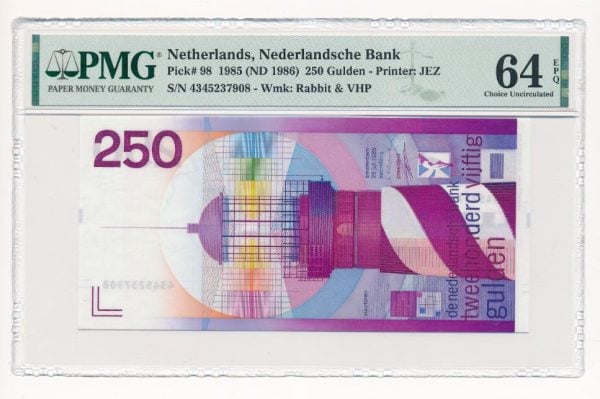 Nederland 250 Gulden 1985 Vuurtoren PMG 64 EPQ Choice Uncirculated/Unc