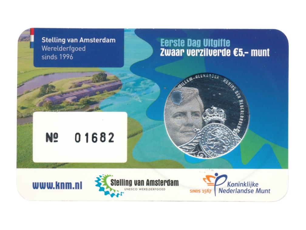 Nederland 5 Euro 2017 Stelling van Amsterdam Eerste Dag Uitgifte in coincard