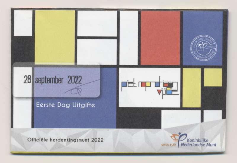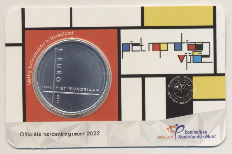 荷兰 5 欧元 Piet Mondrian 2022 年首日发行纪念币卡