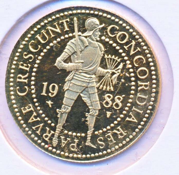 1988 年荷兰金双公爵 贝娅特丽克丝统治时期 Kwaliteit: (Proof in capsule) 重量:6.988 克 含金量:983/1000 净金:6.869204 克
