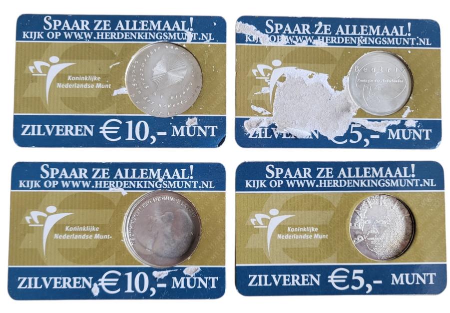 Nederland set 1e 4 coincards 5 en 10 Euro 2002-2004 (beschadigd)