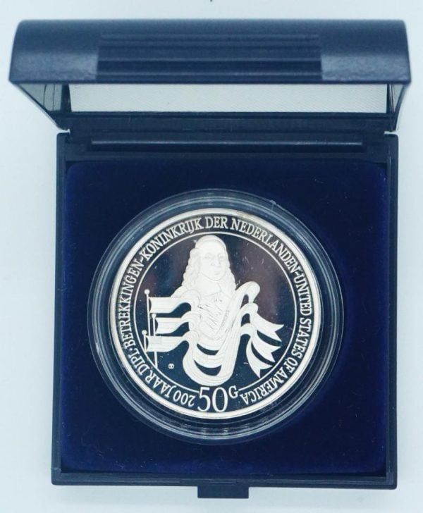 Nederlandse Antillen 50 Gulden 1982 Dipl. betrekkingen NL-VS Zilver Proof in doosje