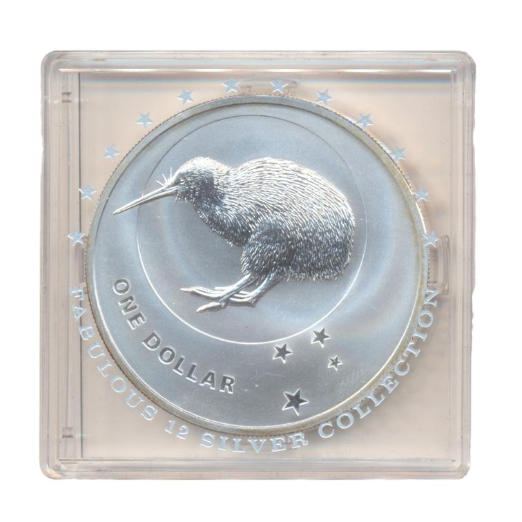 Nieuw-Zeeland 1 ounce zilver 2010 Kiwi Deze munt van 1 Dollar is geslagen in puur zilver (999/1000). Gewicht van de munt = 1 troy ounce = 31,1034768 gram. De munt is verpakt in een capsule.