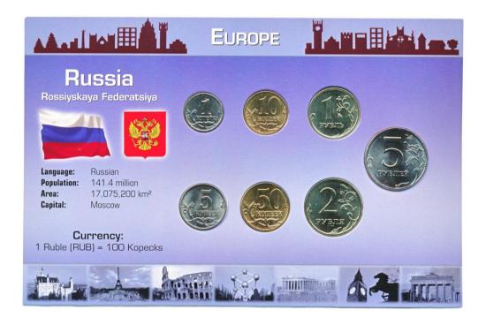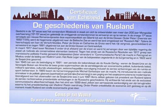 俄罗斯套币 卢布/戈比 选自 "世界钱币 "系列。与荷兰皇家造币厂一起环游世界","欧洲 "分册。由荷兰皇家造币厂出版。 硬币的年份可能有所不同。