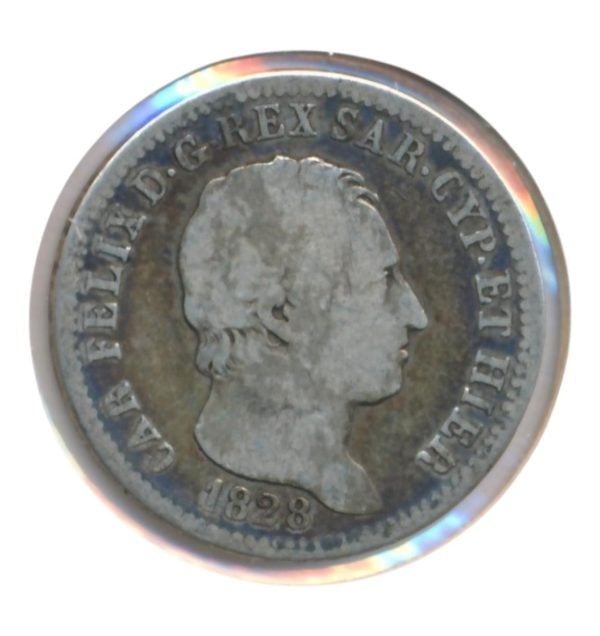 Sardinië (Italië) 1 Lire 1828 Zilver 900/1000.