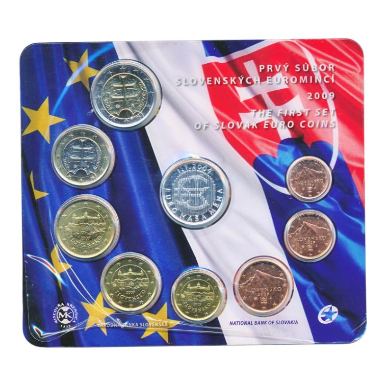 Slowakije Jaarset euro 2009-I BU – De eerste set van Slovaakse euromunten De set bevat de 1 eurocent t/m 2 euro in BU-kwaliteit.